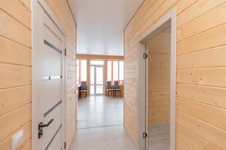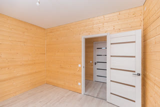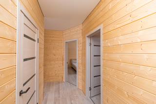 Качественные межкомнатные двери,на полу ламинат,натяжные потолки,стены оклеены обоями в нейтральных тонах.